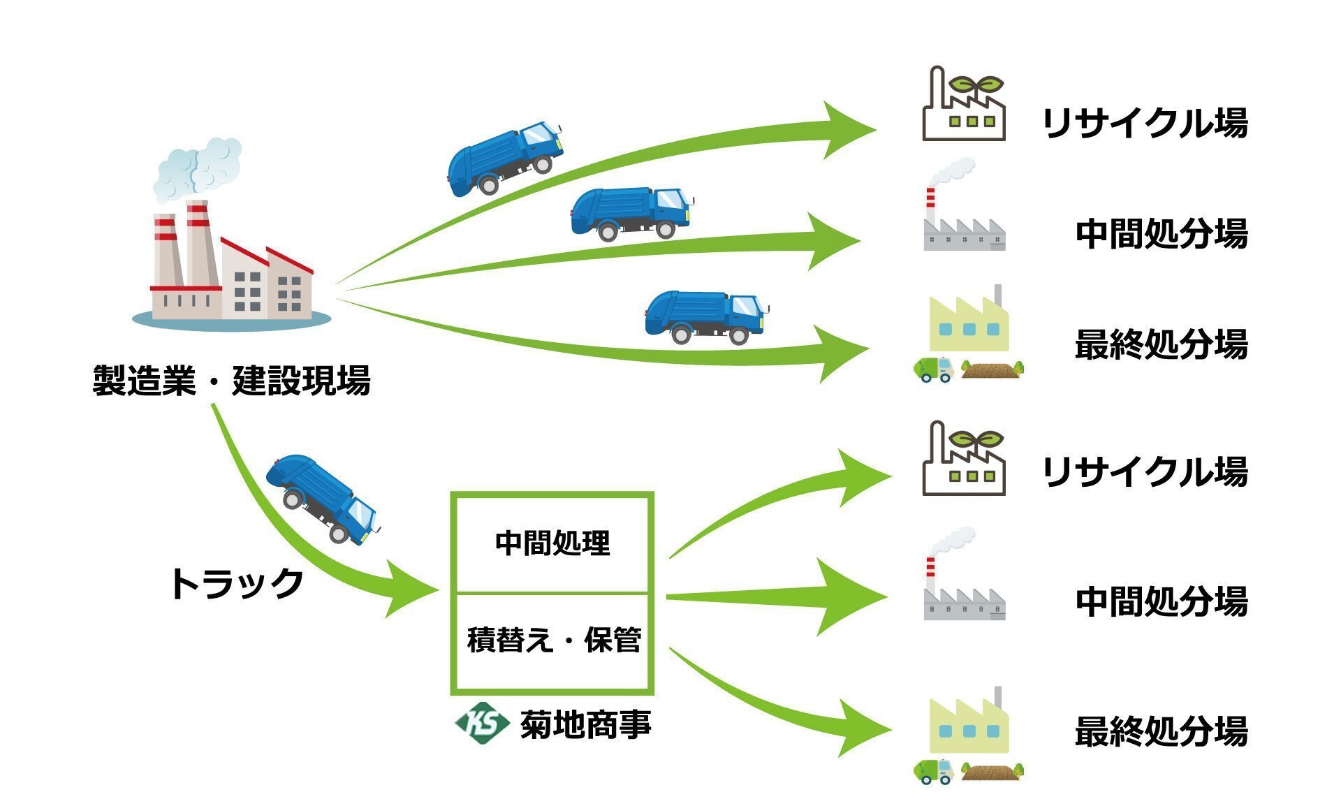 菊地商事は資源循環型社会の実現を目指し、活動を続けています。ただ収集運搬するのではなく、廃棄物処理と再資源化の両方に取り組み、お客様や地域住民様のニーズにお応えできるように尽力しています。産業廃棄物の処分でお悩みの際は、弊社までお気軽にご相談ください。