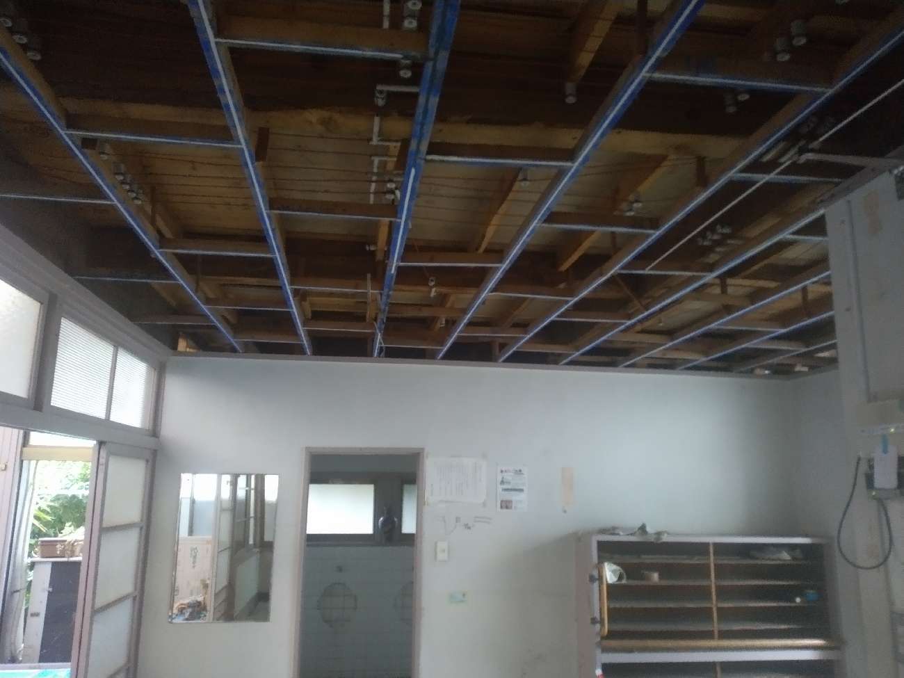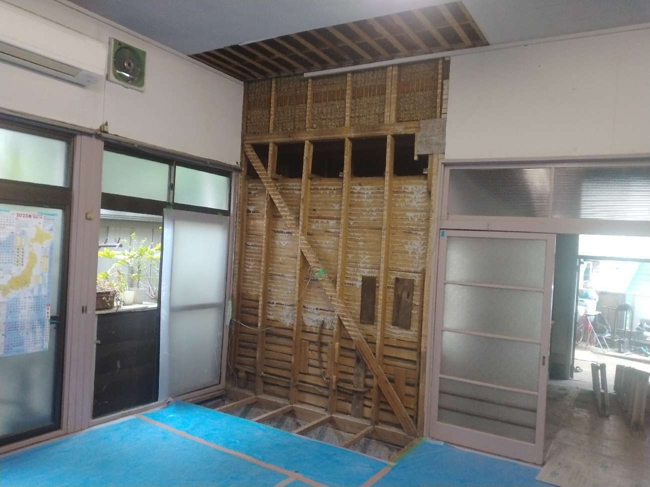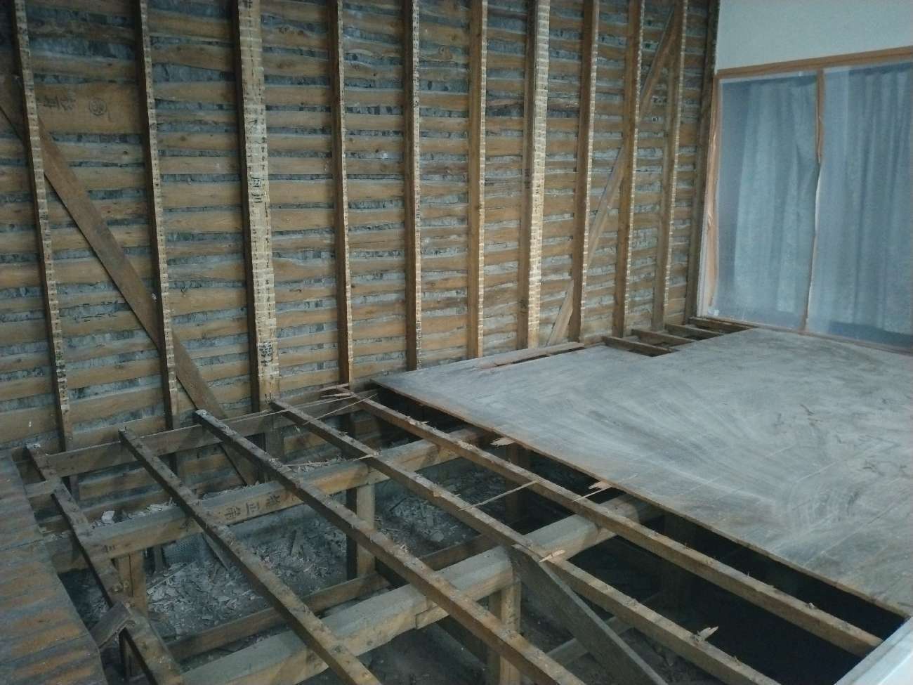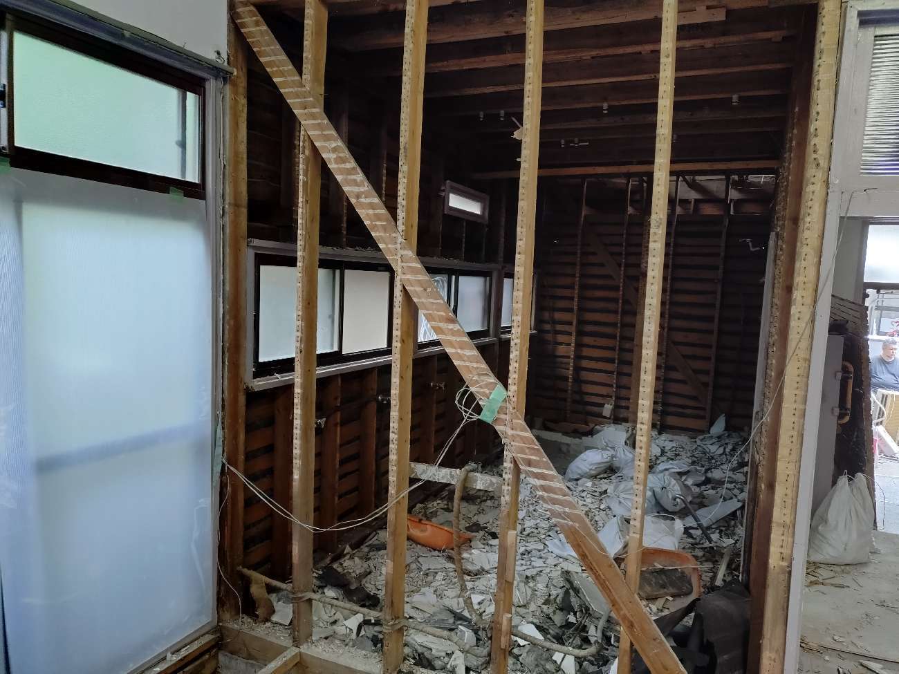古い建物ならではの構造的な工夫や、過去の改修履歴なども見えてきて、現場では多くの学びがありました。特に印象的だったのは、壁の中から現れた昔の配線や補強材。時代を感じさせる素材が使われていて、建物が地域の歴史を背負っていることを改めて実感しました。