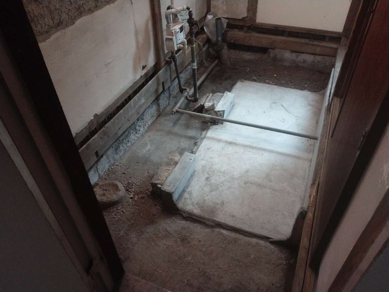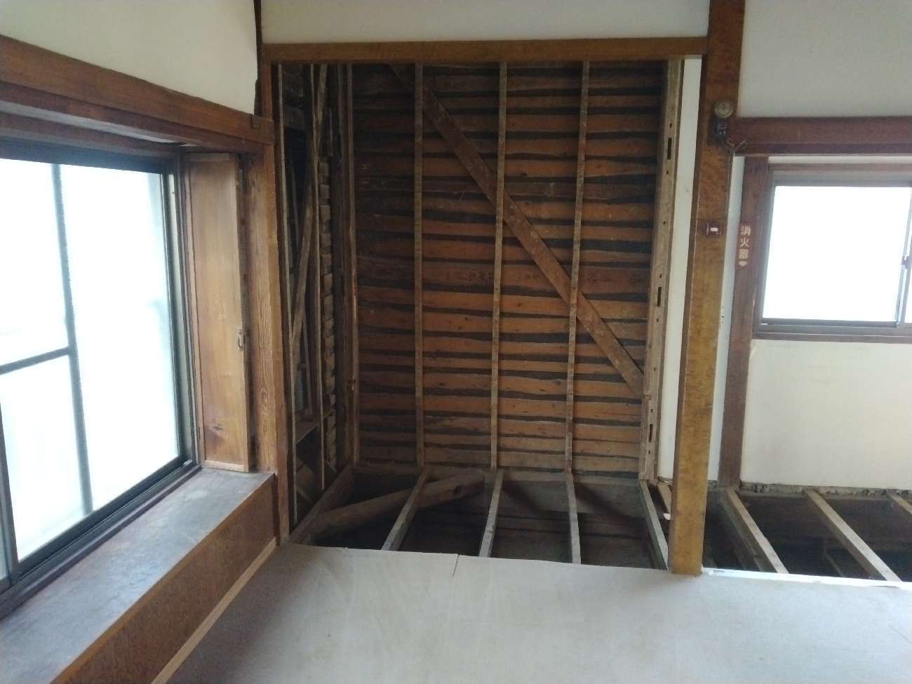 先日、地域の集会施設である某会館にて、耐震補強工事の一環として部分的な解体作業を行いました。